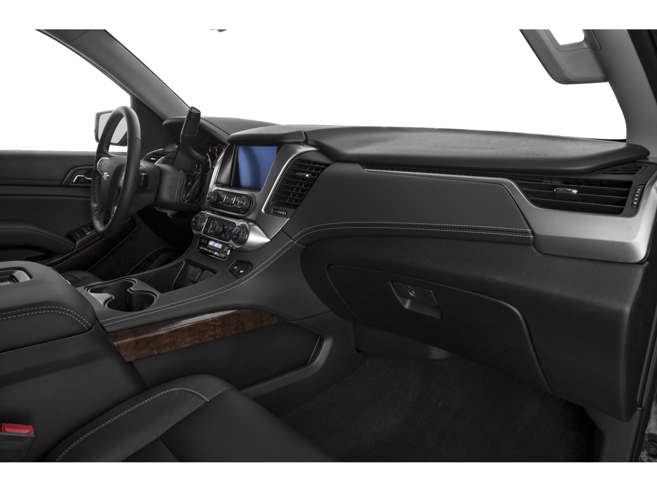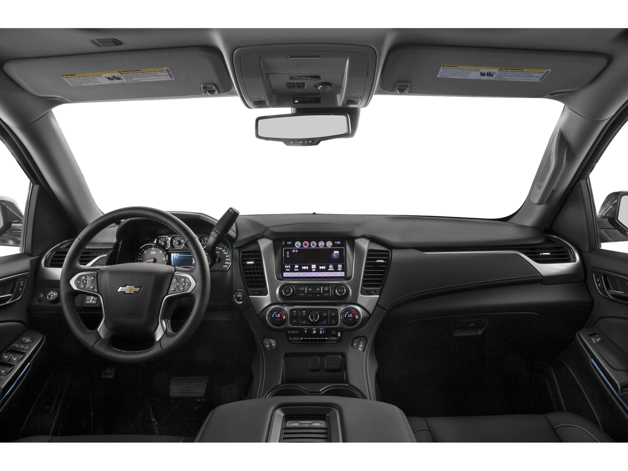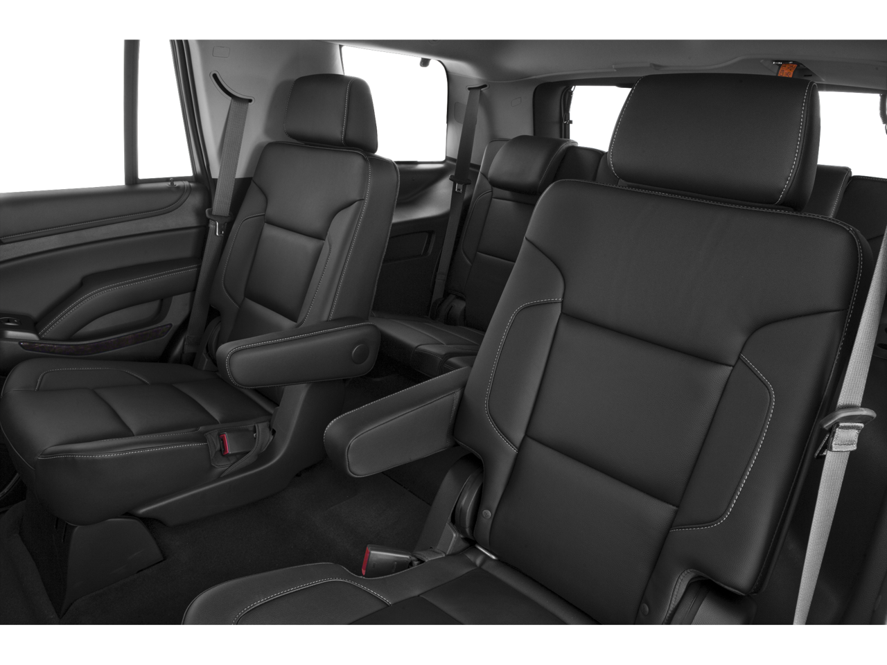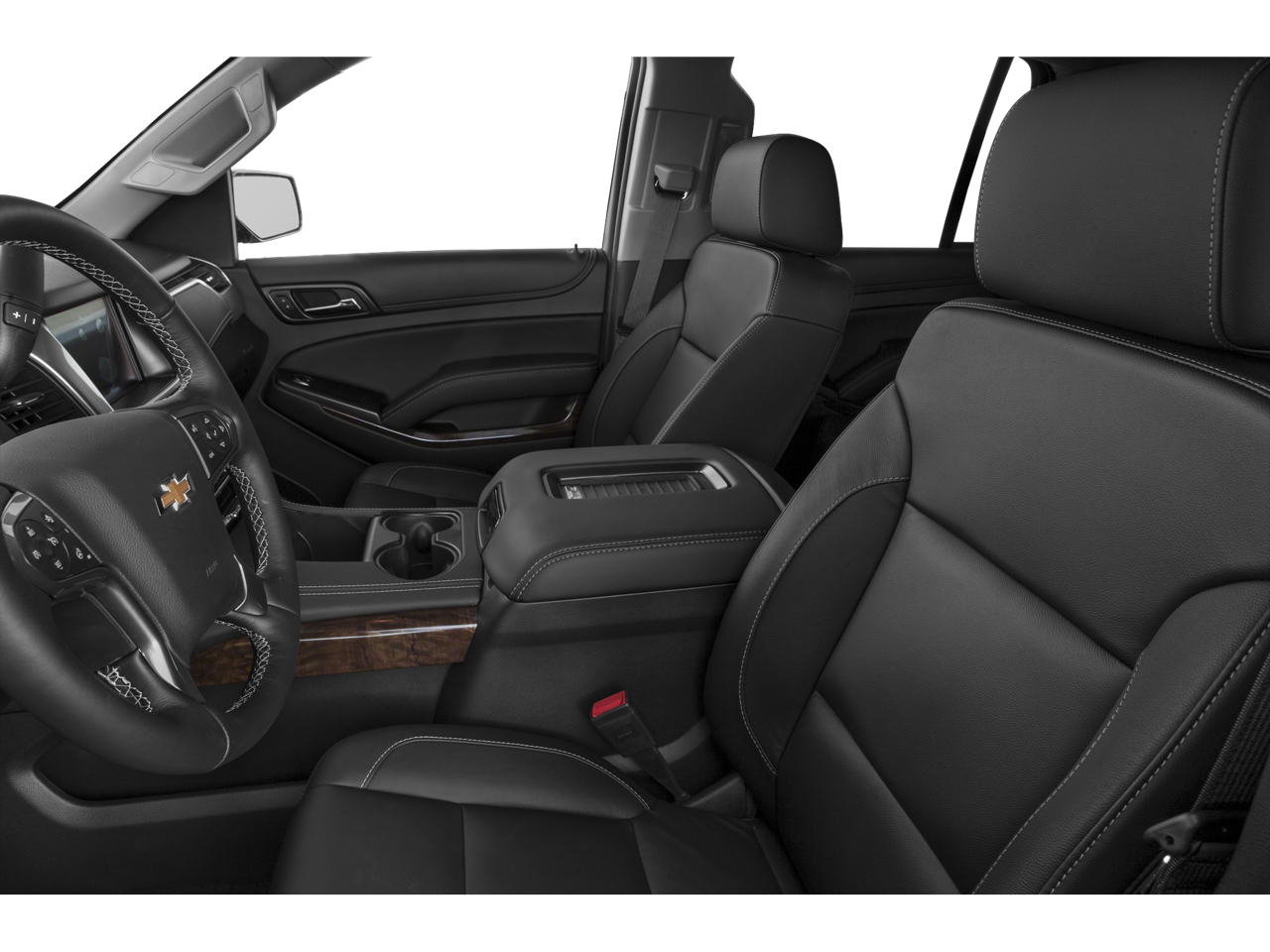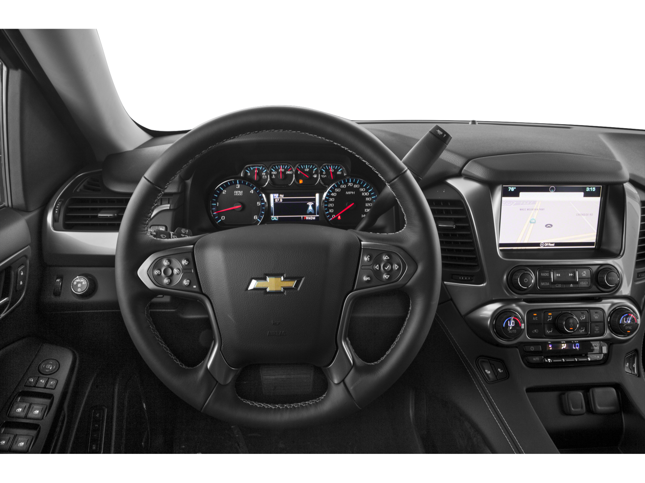SUN, ENTERTAINMENT AND DESTINATIONS PACKAGE, (CF5) power sunroof, (U42) rear seat DVD entertainment system and (IO6) Chevrolet MyLink radio with navigation, LUXURY PACKAGE includes (AS8) power fold third row 60/40 split bench seats, (ATH) Passive Entry System, (ATT) second row power release 60/40 split folding bench seat, (BTM) keyless start, (DL3) outside heated power-adjustable, power-folding mirrors, (KA6) heated second row seats, (K4C) Wireless charging device, (N38) memory power tilt and telescopic steering column, (TC2) Hands free liftgate, (T3U) fog lamps, (UD5) front and rear parking assist, (UFG) Rear Cross-Traffic Alert, (UKC) Side Blind Zone Alert and (UVD) heated steering wheel and color key rear fascia trailer hitch closeout, ENTERTAINMENT SYSTEM, REAR SEAT, BLU-RAY/DVD with remote control, overhead display, two 2-channel wireless infrared headphones and auxiliary audio/video input jacks/SD and USB slots, WHEELS, 20 X 9 (50.8 CM X 22.9 CM) POLISHED-ALUMINUM, SEATS, SECOND ROW BUCKET, POWER RELEASE, AUDIO SYSTEM, CHEVROLET MYLINK RADIO WITH NAVIGATION, AM/FM STEREO AND CD PLAYER 5 USB ports, 1 SD card reader and an auxiliary jack, LPO, BLACK ROOF RACK CROSS BARS (dealer-installed), MIRRORS, OUTSIDE HEATED POWER-ADJUSTABLE, POWER-FOLDING AND DRIVER-SIDE AUTO-DIMMING with integrated turn signal indicators and ground illumination, ENGINE, 5.3L ECOTEC3 V8 WITH ACTIVE FUEL MANAGEMENT, DIRECT INJECTION AND VARIABLE VALVE TIMING includes aluminum block construction (355 hp [265 kW] @ 5600 rpm, 383 lb-ft of torque [518 N-m] @ 4100 rpm) (STD), TRANSMISSION, 6-SPEED AUTOMATIC, ELECTRONICALLY CONTROLLED with overdrive and tow/haul mode (STD), STEERING WHEEL, HEATED, LEATHER-WRAPPED AND COLOR-KEYED with theft-deterrent locking feature.