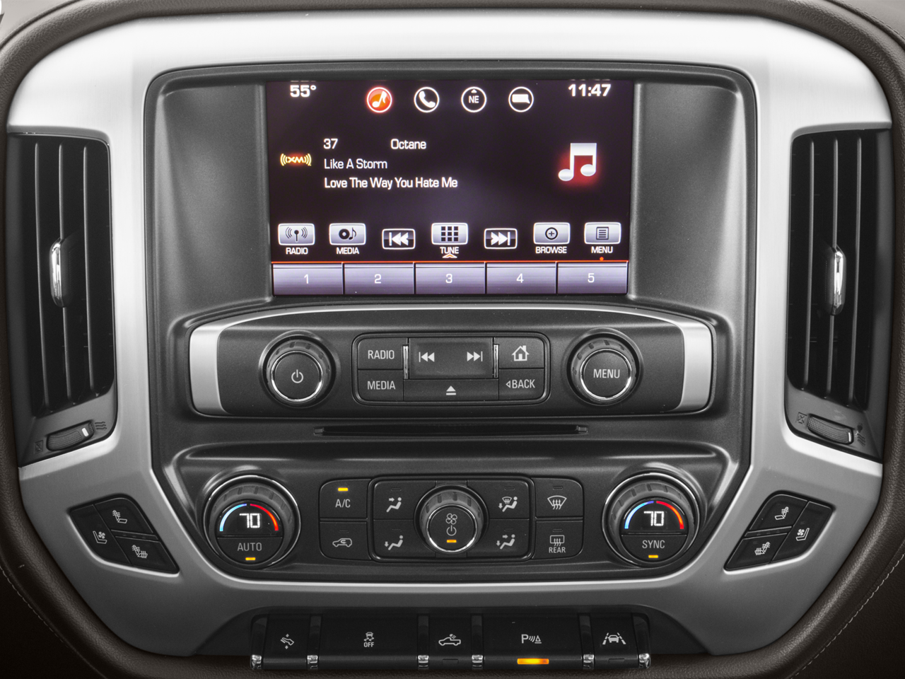 SLT CREW CAB PREMIUM PLUS PACKAGE Includes (NZP) 20" chrome clad wheels, (QSS) P275/55R20 all-season, blackwall tires, (UD5) Front and Rear Park Assist, (UVD) heated steering wheel, (A48) power sliding rear window, (BVQ) 6" rectangular chrome tubular assist steps, (UQA) Bose premium audio system, (IO6) GMC Infotainment 8" Diagonal Color Touch audio system with Navigation, (JL1) trailer brake controller, (Y86) Enhanced Driver Alert Package, (AN3) front bucket seats, (KQV) heated and vented seating, (CGN) spray-on bed liner and (T4L) full LED headlamps. SUNROOF, POWER, ENHANCED DRIVER ALERT PACKAGE includes (UHX) Lane Keep Assist, (TQ5) IntelliBeam headlamps, (UHY) Low Speed Collision Mitigation Braking, (UD5) Front and Rear Park Assist and (UEU) Forward Collision Alert, Safety Alert Seat, SEATING, HEATED AND VENTILATED PERFORATED LEATHER-APPOINTED FRONT BUCKET, SEATS, FRONT FULL-FEATURE LEATHER-APPOINTED BUCKET with (KA1) heated seat cushions and seat backs. Includes 10-way power driver and front passenger seat adjusters, including 2-way power lumbar control, 2-position driver memory, adjustable head restraints, (D07) floor console and storage pockets. (Includes (K4C) wireless charging. AUDIO SYSTEM, 8" DIAGONAL COLOR TOUCH SCREEN NAVIGATION WITH GMC INFOTAINMENT SYSTEM, AM/FM/SIRIUSXM, HD RADIO with USB ports, auxiliary jack, Bluetooth® streaming audio for music and most phones, Pandora Internet radio and voice-activated technology for radio and phone, ENGINE, 5.3L ECOTEC3 V8, WITH ACTIVE FUEL MANAGEMENT, DIRECT INJECTION and Variable Valve Timing, includes aluminum block construction (355 hp [265 kW] @ 5600 rpm, 383 lb-ft of torque [518 Nm] @ 4100 rpm; more than 300 lb-ft of torque from 2000 to 5600 rpm) (STD), TRANSMISSION, 8-SPEED AUTOMATIC, ELECTRONICALLY CONTROLLED with overdrive and tow/haul mode. Includes Cruise Grade Braking and Powertrain Grade Braking, STEERING WHEEL, HEATED, LEATHER WRAPPED with audio and cruise controls.