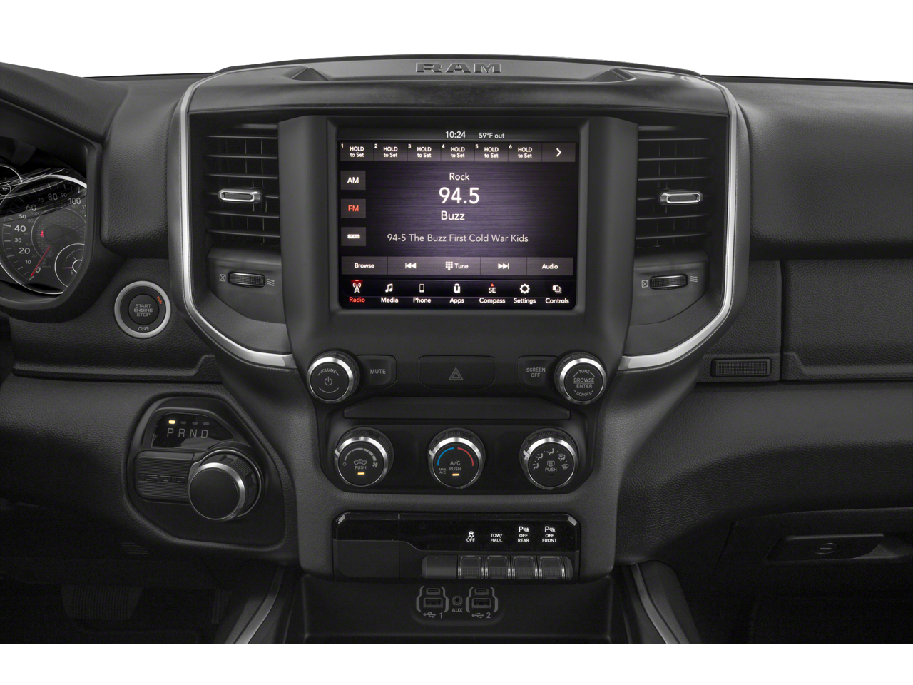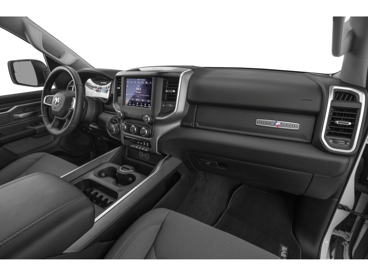BIG HORN NON-BSG LEVEL 2 GROUP W/MEDIA HUB Google Android Auto®, Radio: Uconnect 4 w/8.4 Display, Rear Window Defroster, Integrated Center Stack Radio, ParkSense Front/Rear Park Assist w/Stop, Rear View Auto Dim Mirror, Power Adjustable Pedals, For More Info, Call 800-643-2112, Rear Power Sliding Window, Rear Dome w/On/Off Switch Lamp, Glove Box Lamp, Power 4-Way Driver Lumbar Adjust, Power 8-Way Driver Seat, Auto Dim Exterior Driver Mirror, 2 USB Full Function/Charge Only Media Hub, Heated Front Seats, Heated Steering Wheel, 8.4 Touchscreen Display, Foam Bottle Insert (Door Trim Panel), Class IV Receiver Hitch, Dampened Tailgate, Security Alarm, Power Heated Fold Away Mirrors, Apple CarPlay®, Big Horn IP Badge, Remote Start System, SiriusXM Satellite Radio, WHEELS: 20 X 9 ALUMINUM CHROME CLAD, ENGINE: 5.7L V8 HEMI MDS VVT Active Noise Control System, 180 Amp Alternator, Heavy Duty Engine Cooling, GVWR: 7,100 lbs, Dual Rear Exhaust w/Bright Tips, Hemi Badge, SPORT APPEARANCE PACKAGE Tires: 275/55R20 OWL All Season, Exterior Mirrors w/Supplemental Signals, Power Heated Fold-Away Mirrors, Body Color Door Handles, Exterior Mirrors Courtesy Lamps, Auto Dim Exterior Driver Mirror, Exterior Mirrors w/Memory, Grille B/Color Outline 1 Texture 2, Black Interior Accents, Power-Folding Mirrors, Body Color Front Bumper, Body Color Rear Bumper w/Step Pads, RADIO: UCONNECT 4C NAV W/8.4 DISPLAY Google Android Auto®, SiriusXM Traffic Plus, SiriusXM Satellite Radio, Disassociated Touchscreen Display, HD Radio, For Details, Visit DriveUconnect.com, Integrated Center Stack Radio, For More Info, Call 800-643-2112, 1-Yr SiriusXM Guardian Trial, Air Conditioning ATC w/Dual Zone Control, GPS Navigation, SiriusXM Travel Link, No Satellite Coverage w/HI/AK/PR/VI/GU, 8.4 Touchscreen Display, Apple CarPlay®, 9 AMPLIFIED SPEAKERS W/SUBWOOFER, QUICK ORDER PACKAGE 25Z BIG HORN/LONE STAR Engine: 5.7L V8 HEMI MDS VVT, Transmission: 8-Speed Automatic (8HP75), Steering Wheel Mounted Audio Controls, TRANSMISSION: 8-SPEED AUTOMATIC (8HP75), BLACK, DELUXE CLOTH BUCKET SEATS Power 8-Way Driver Seat, Center Console Parts Module, Bucket Seats, Manual Adjust 4-Way Front Passenger Seat, Full Length Floor Console, Power 4-Way Driver Lumbar Adjust.