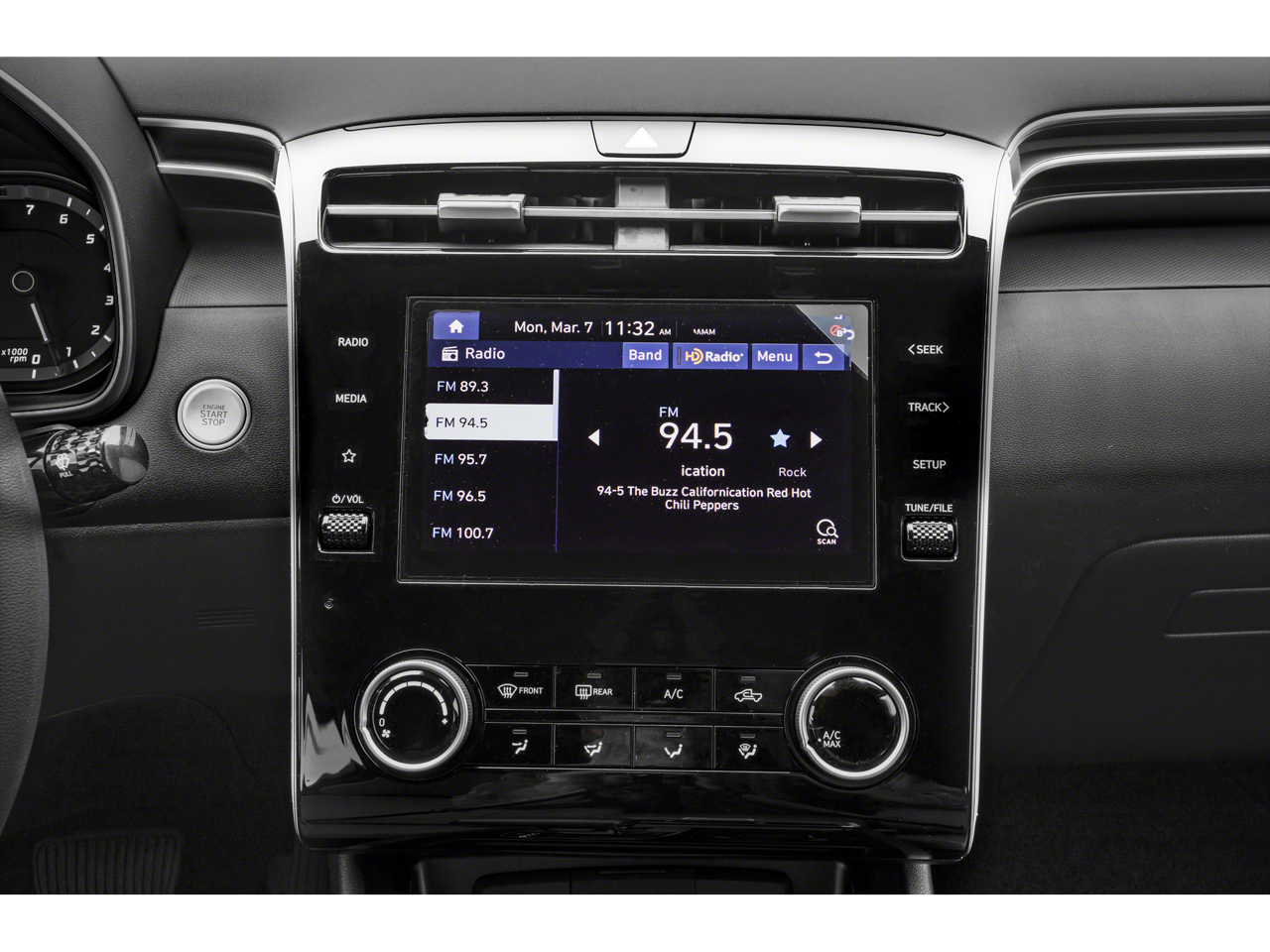 - Radio: AM/FM Audio System -inc: low-cost display audio, 8" color touchscreen, 6 speakers, SiriusXM satellite radio w/3-month trial subscription, HD Radio, Blue Link connected car system, Bluetooth, wireless Apple CarPlay and Android Auto and dual front high-power USB outlets