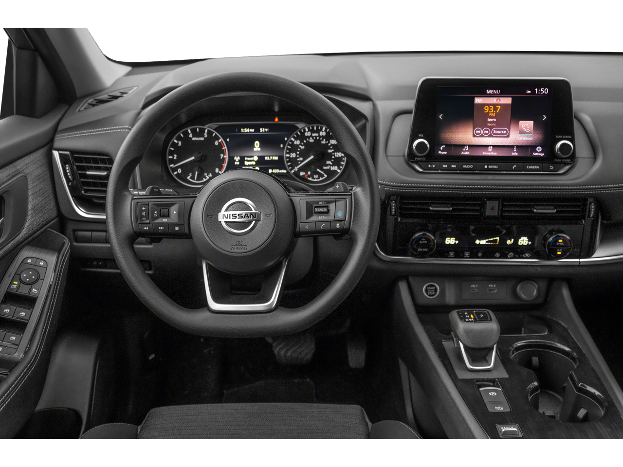 - Radio: AM/FM -inc: 6 speakers, NissanConnect featuring Apple CarPlay and Android Auto, 8" color touch screen display, Bluetooth, WiFi hotspot and NissanConnect services powered by SiriusXM
